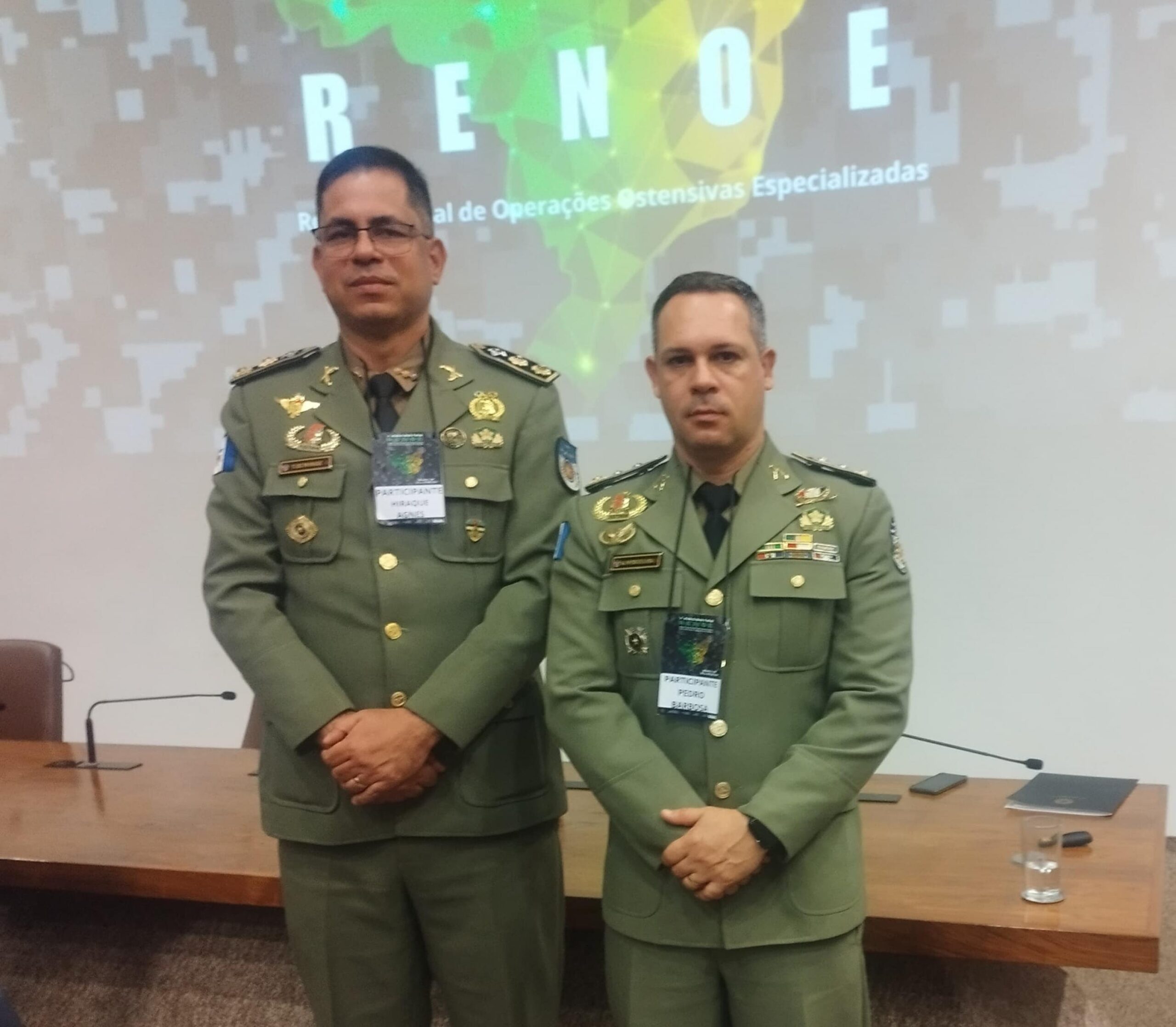 Os oficiais da Polícia Militar alagoana, tenente-coronel Hiraque Agnes e major Pedro de Oliveira, participam entre os dias 25 e 27 de setembro do 1º Encontro da Rede Nacional de Operações Ostensivas Especializadas (RENOE). O evento é realizado no edifício-sede do Ministério da Justiça e Segurança Pública (MJSP), em Brasília.