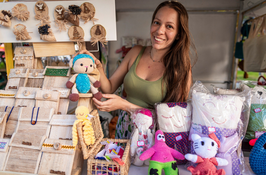 Amanda Gomes é artesã com dois anos de experiência e avalia a oportunidade como singular. Ela ingressou na economia solidária, após buscar informações com outras artesãs e se inscrever no setor responsável. Ao participar do evento, diz estar satisfeita com as vendas no local.