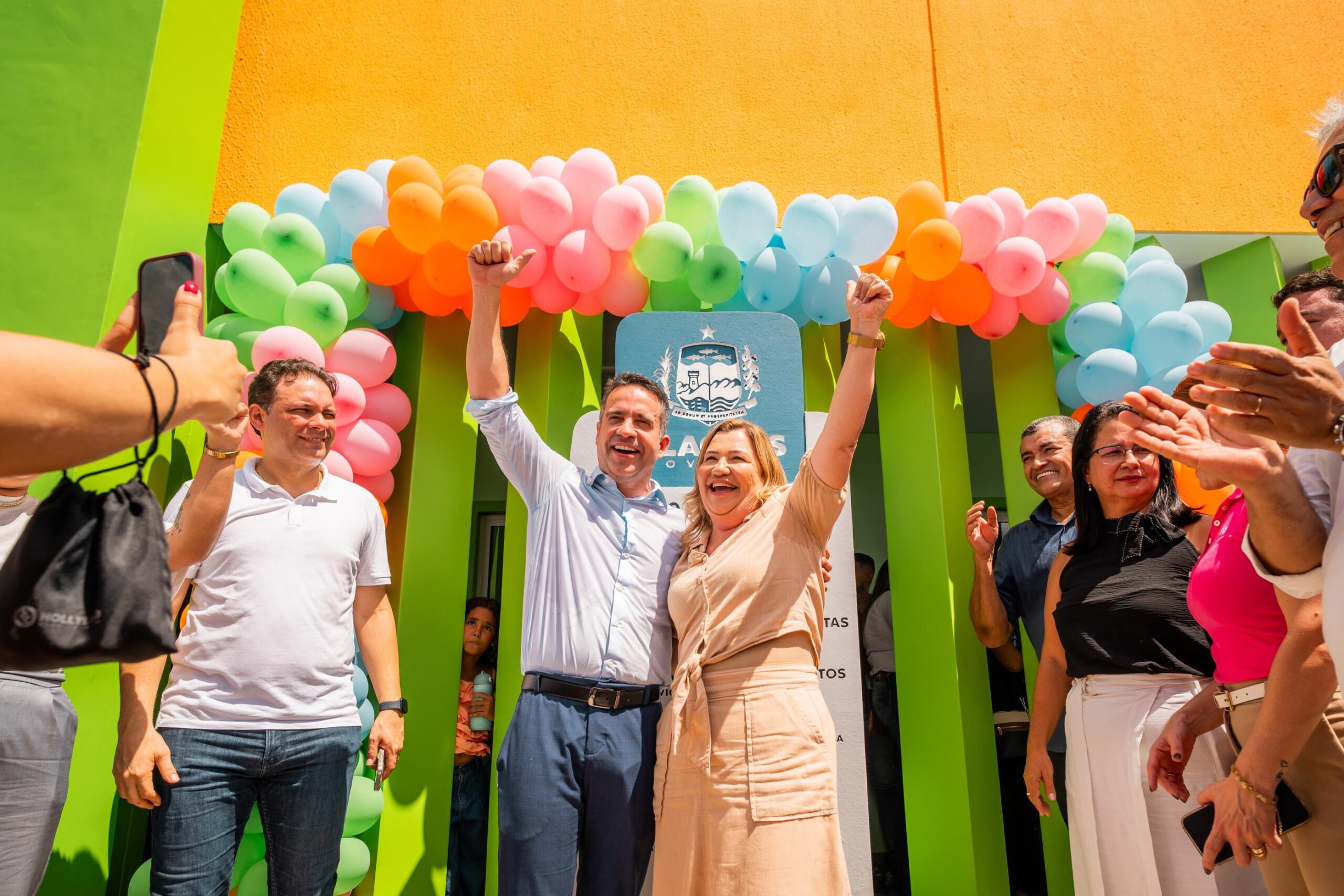 Ao lado da prefeita de Porto Calvo, Eronita Spósito, Paulo Dantas e as secretárias de Estado da Educação, Roseane Vasconcelos; e da Primeira Infância, Caroline Leite, inauguraram a Creche Cria.