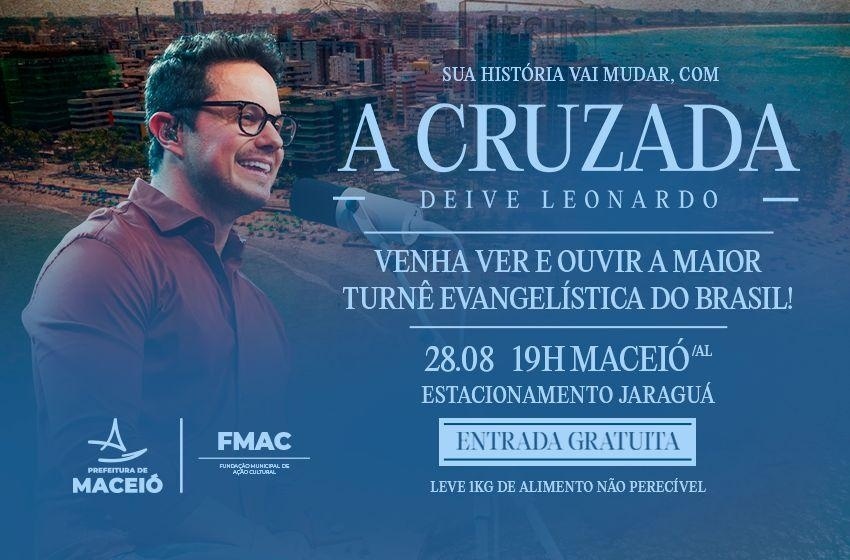 Na próxima quinta-feira (28), Maceió será palco de um encontro de fé e emoção. O evangelista e escritor Deive Leonardo realiza, a partir das 19h, o evento “A Cruzada”, no estacionamento de Jaraguá, em um show gratuito.
