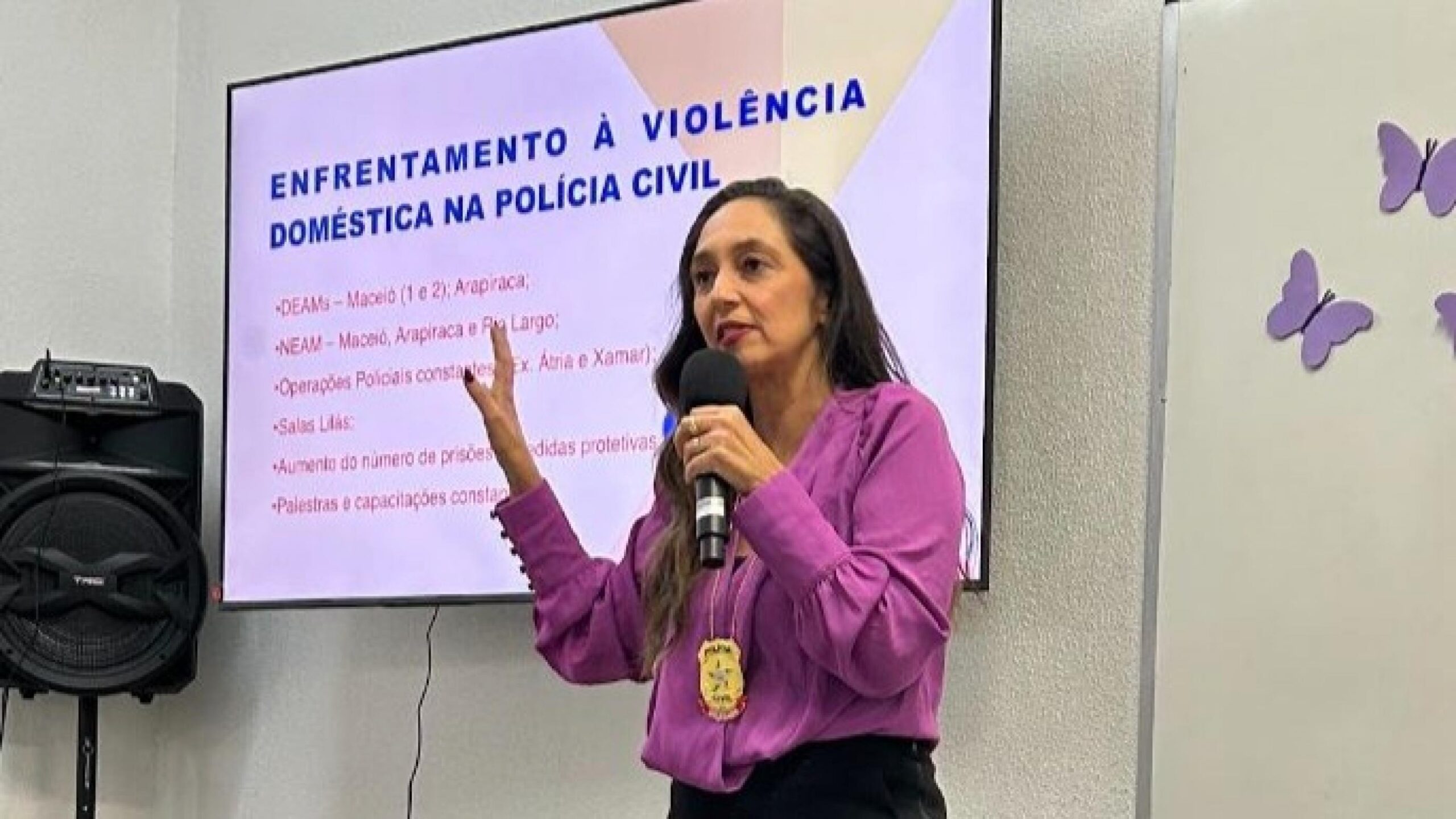Delegada Luci Mônica ministra palestra e reforça o papel da Polícia Civil no combate à violência contra a mulher
