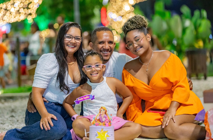 Em cima da mesa de madeira, a imagem de uma princesa adornava o bolo colorido, acompanhada de coxinhas, docinhos e refrigerantes, como pede toda boa festa de aniversário . Ao redor, a família reunida sorriu, tirou selfies e entoava um animado “parabéns pra você” que ecoava entre as árvores iluminadas e brinquedos do Parque Centenário. No coração de Maceió, o espaço, decorado com elementos infantis para a Vila Encantada da Prefeitura de Maceió, virou cenário de celebrações e momentos de união e afeto.