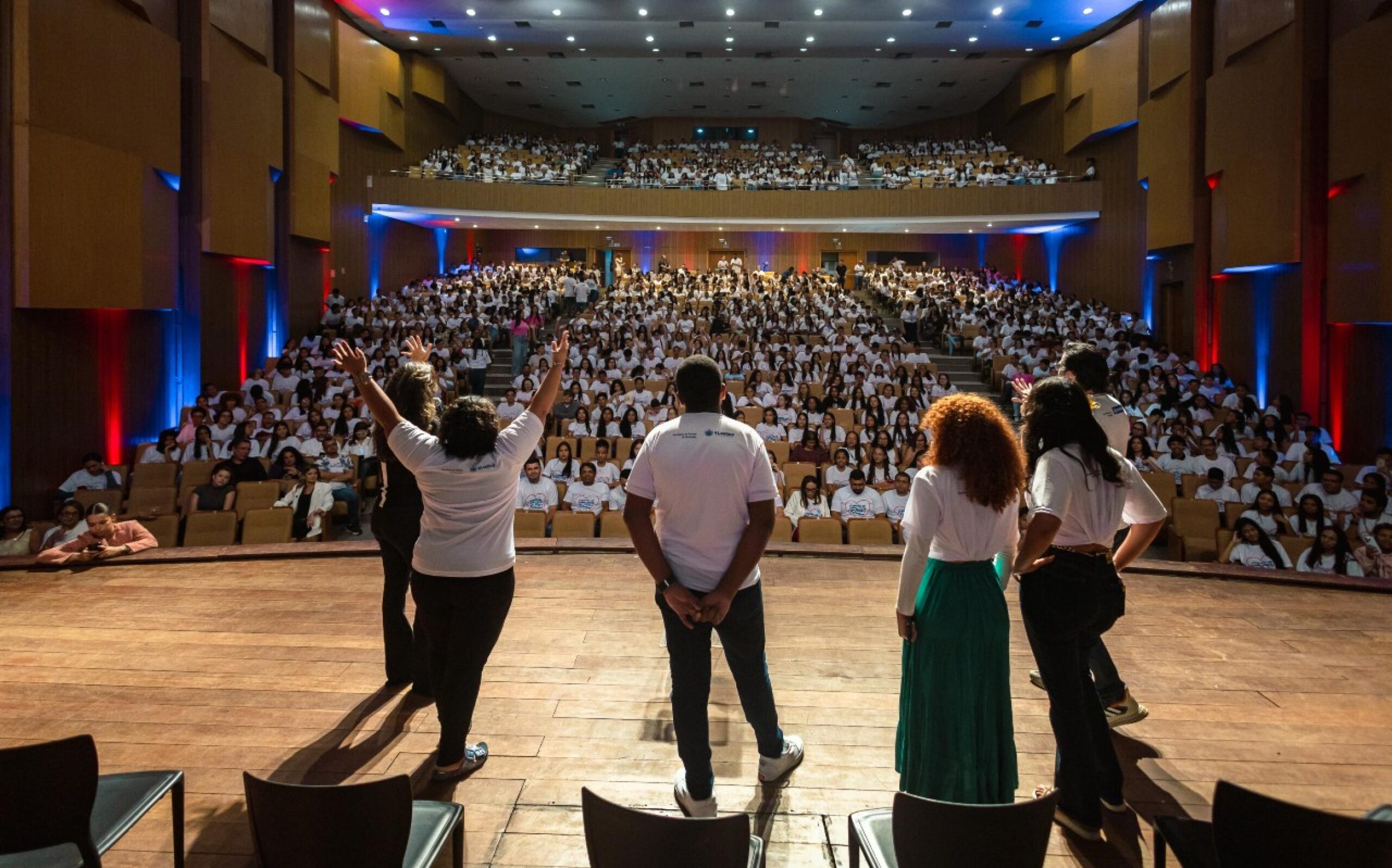 O Governo de Alagoas recepcionou, na manhã desta terça-feira (10), 1.200 novos alunos das primeiras séries do Ensino Médio da rede estadual dos 102 municípios alagoanos. A aula inaugural, que abriu oficialmente o ano letivo de 2026, ocorreu no Teatro Gustavo Leite, no Centro de Convenções, em Jaraguá.